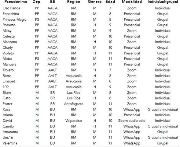 habitantes de Chile de 7 a 11 años de edad, provenientes de distintos contextos