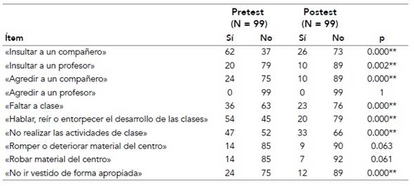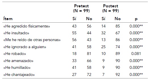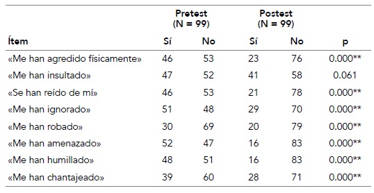 intervención para mejorar la convivencia escolar desde la empatía. Participaron
