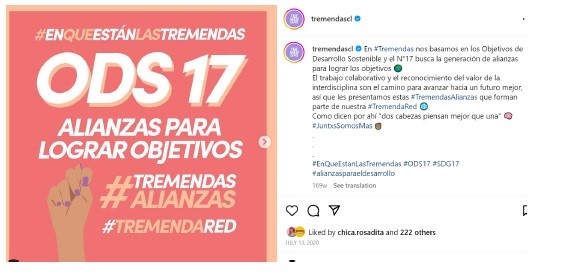 Nota. Tomada de @tremendascl [Instagram] [Instagram] (13 de julio de 2020). © Tremendas. Reproducida bajo el amparo de la ley colombiana en tanto que su uso corresponde a una investigación científica, es un uso honrado (de un bien no comercializable) y su difusión en la revista no tiene ánimo de lucro.