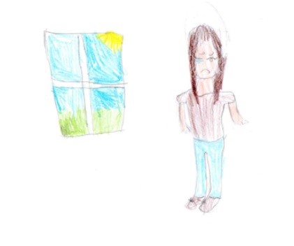 Fue posible identificar dos emociones que adoptaron la categoría de tema central: tristeza y aburrimiento. En relación con la primera, se presentó un caso en el que la participante se dibujó a sí misma de pie, dentro de su casa, con lágrimas en el rostro (figura 8).