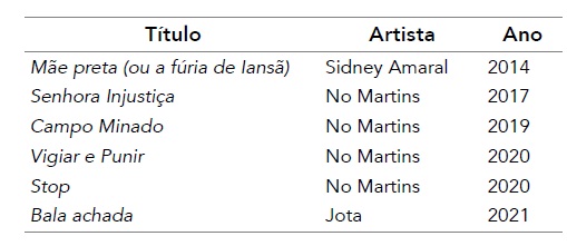 entre 2014-2021. Os resultados indicam que tais obras problematizam questões acerca das dimensões raciais do policiamento e seus regimes de vigilância, controle e violência.