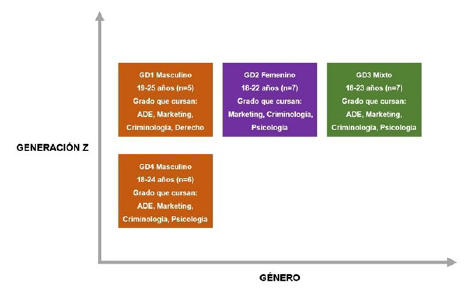 A partir de estas consideraciones previas, establecimos como criterio de diferenciación el género, poniendo de manifiesto que esta variable influye en el consumo de videojuegos, en la forma de sociabilizar y en la percepción en las comunidades en línea (Calderón & Gómez, 2022; Rennick et al., 2023). Por ello, buscamos la representatividad de géneros (grupos mixtos) y el contraste (grupos de chicas y grupos de chicos).