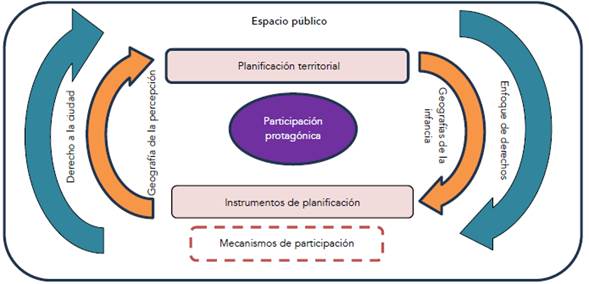 Nota. Propuesta teórica que articula la noción protagónica de la niñez con la planificación territorial para el diseño mecanismos de participación ciudadana en los instrumentos de planificación territorial.